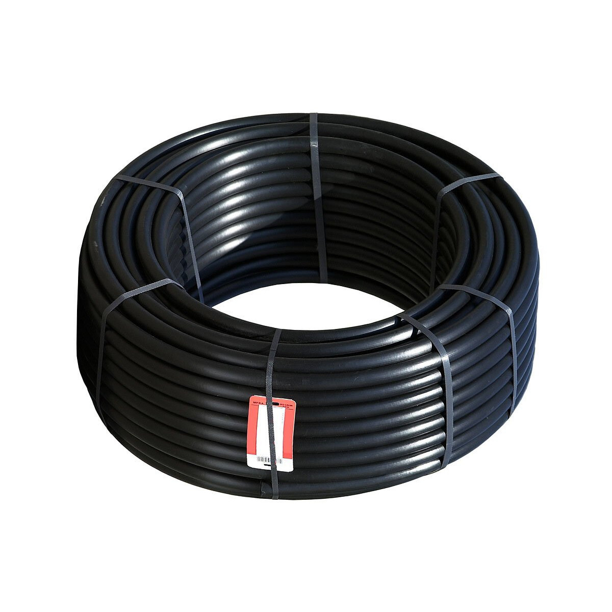 Tube d'irrigation en polyéthylène de haute densité PE63. Couleur : noir. SDR 17. Pression nominale : PN 6,3 bars. Résistant à la corrosion, à l'abrasion et aux U.V. Dimensions : Diamètre 25 mm x Longueur 25 m.