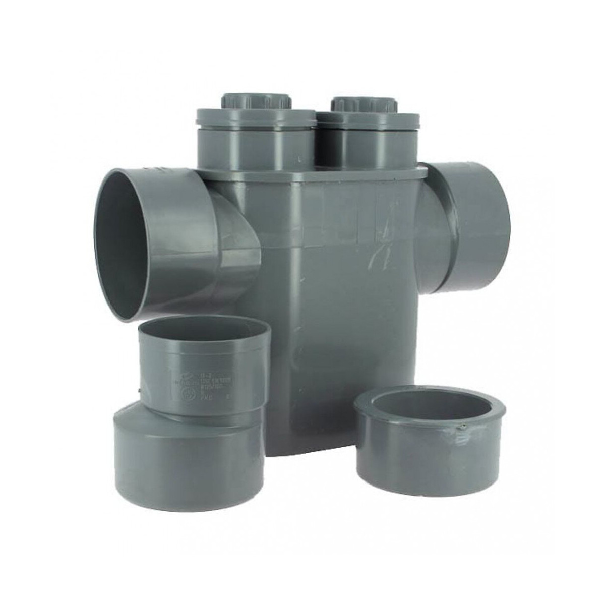 Evite les remontées d'odeurs de l'assainissement vers l'intérieur de la maison. Fournis avec réductions pour s'adapter à une canalisation de diamètre 110 ou 125 mm. avec 2 tampons de visite. Evite les remontées d'odeurs de l'assainissement vers l'intérieur de la maison. Fournis avec réductions pour s'adapter à une canalisation de diamètre 110 ou 125 mm. avec 2 tampons de visite. Photo non contractuelle, car il y a plusieurs vendeurs sur une même fiche produit.