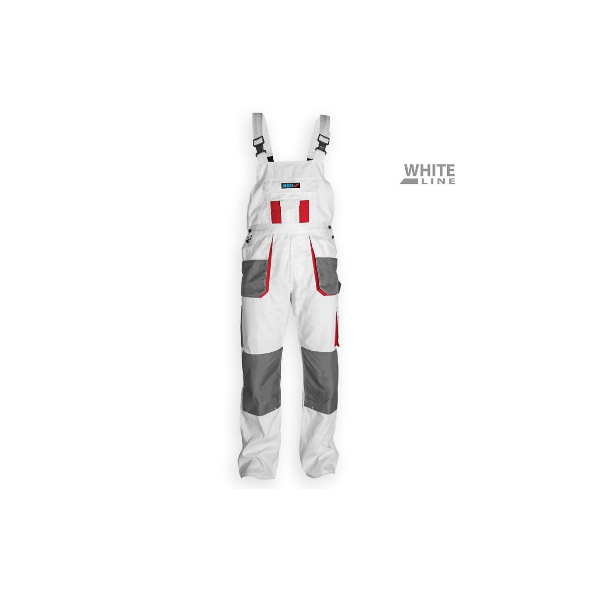 Cette salopette de travail est composée de 80% de polyester et de 20% de coton. Elle a 9 poches, dont 7 sont de type velcro. Le matériau des poches et des genoux a été renforcé. Triple piqûre sur les jambes. La taille est réglable par un élastique et des boutons. En outre, le pantalon est doté d'un porte-clés et d'une boucle pour le marteau, CARACTÉRISTIQUES TECHNIQUES: Taille : DL (54), Matériau : 80% polyester 20% coton, Grammage : 190g/m²Spécifications techniques