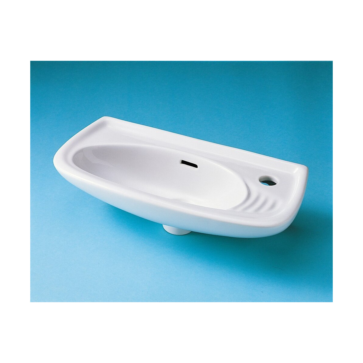 Le lave-mains est en céramique blanc. Il est de forme allongée et permet de poser un savon sur les striures par exemple. Caractéristiques : - Dimensions : longueur 50 cm, hauteur 15,5 cm, profondeur 23 cm - Couleur : blancSpécifications techniques