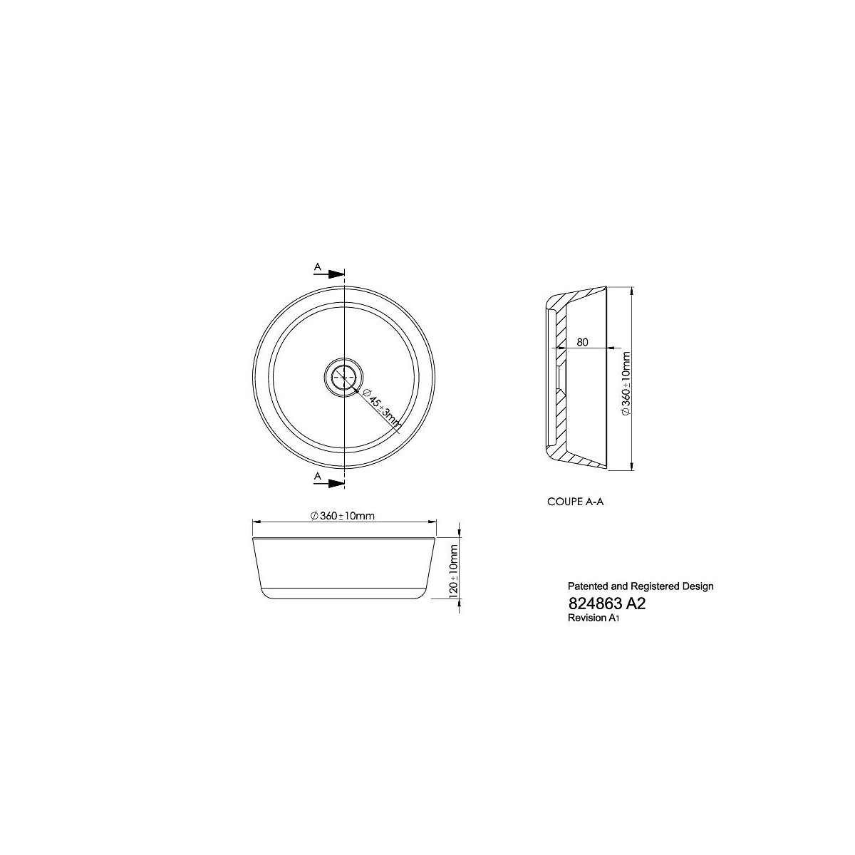 Ajoutez une pointe de rondeur dans votre salle de bains avec RANGO! Caractéristiques de la vasque à poser RANGO : Matière : Céramique Simple vasque Dimensions : 36 x 12 x 36 cmSpécifications techniques