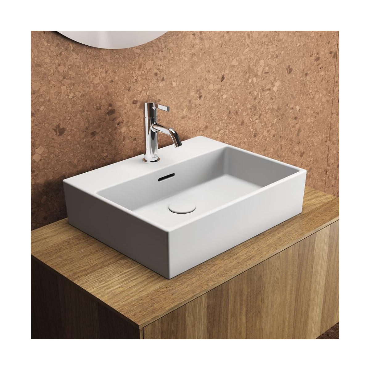 Points forts vasque Design fin et intemporel Fabriqué en gré fin Blanc brillant sur l intégralité de la vasques Garantie : 2 ans Caractéristiques vasque Type d installation : A poser sur meuble Avec trop plein Bonde non fournis Adapté à la robinetterie mono-trou Trou pour robinetterie centré sur la longueur Bonde centrée sur la longueur Matériau : Céramique Référence : T374101 Longeur x Largeur en cm : 50 x 40 cm Hauteur en cm : 12,5 cm Poids en kg : 13.1 kg Attention, bonde à écoulement libre non incluse. Points forts robinet Qualité et savoir faire Ideal Standard Deux couleurs disponibles : or et chrome Version or, pour une pointe d originalité Version chrome, simplicité et élégance Le robinet offre une forme rectangulaire ergonomique Garantie 5 ans Dimensions robinet H x l x L mm : 96 x 48 x 201 mm Longueur du bec en mm : 132 mm Poids en kg : 1.62 kg Caractéristiques robinet Fabriquation du mitigeur : laiton chromé Le robinet se monte sur gorge Débit en l/mn : 5 l/mn Pression en bar : 3 bar Couleurs robinet Mitigeur pour lavabo avec tirette et bonde Ideal Standard Conca, or / référence : BC753A2 Mitigeur pour lavabo avec tirette et bonde Ideal Standard Conca, chrome / référence : BC753AA