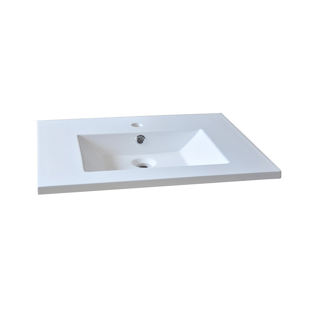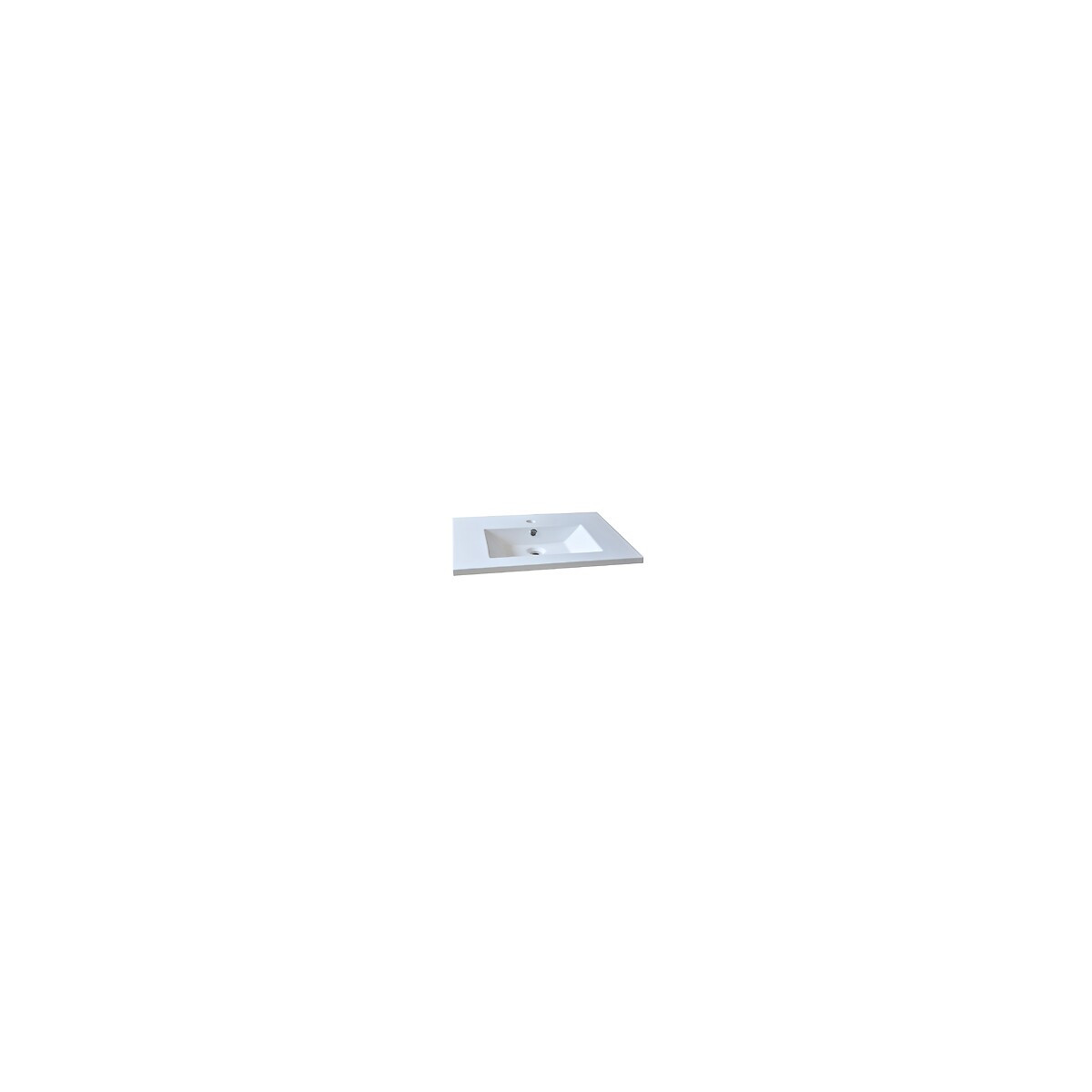 Plan de toilette GLAM 60 cm Vasque 60 cm en résine blanc avec trop plein intégré 20L. Longueur 60 cm, largeur 46 cm, hauteur 12 cm. Epaisseur du plateau 21 mm. Cuve: Longueur 37 cm, largeur 35 cm, hauteur 7 cm. Vendu sans accessoire, ni robinetterie.