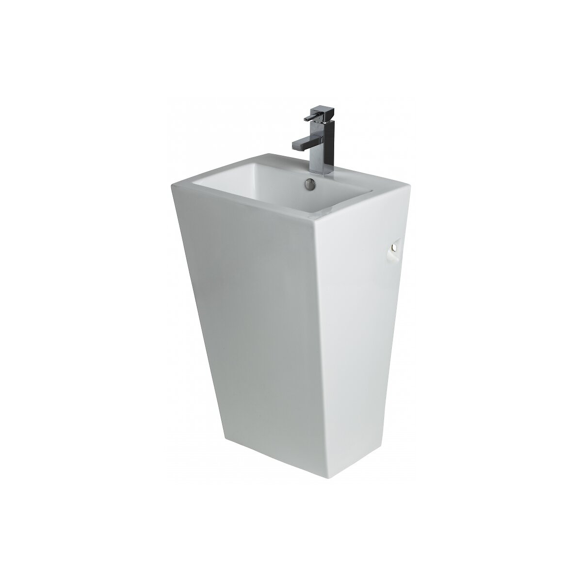 Lavabo sur pied carré en porcelaine blanc Ce lavabo est équipé d'un trop plein et d'une plage de robinetterie Le totem est évidé à l'arriére permettant le passage des tuyaux Livré sans bonde Livré sans robinetterie