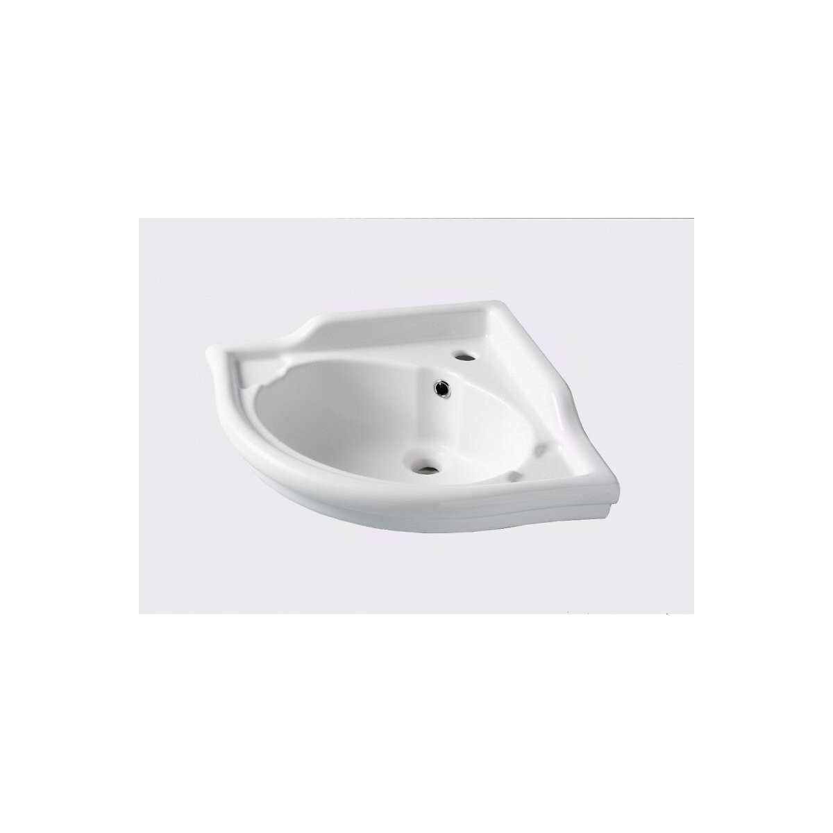 Lavabo d'angle à suspendre style rétro en céramique blanc DESIGN: - Style rétro. - Le lavabo dispose d'un trop plein. - Avec plage de robinetterie. QUALITÉ: - Matériau : Céramique. - Garantie céramique : 10 ans. ACCESSOIRES : - Livré sans bonde et sans siphon. - Le kit de fixation mural est non inclus. INFORMATION DE POSE : Le type de pose du lavabo est à suspendre. PRECONISATIONS : - Avant d'acheter, il est essentiel de vérifier l'espace disponible pour cet article. Le dessin technique vous permet de confirmer votre choix dans l'onglet dessin technique. - Le choix du robinet et de ses accessoires dépendent du produit et de la fonction de ce dernier. Nous vous conseillons de suivre les produits complémentaires disponibles plus bas sur la page. - Lors d'une pose d'un article à suspendre, il est nécessaire de vérifier le type du mur (creux ou dur) avant l'achat de ces fixations.