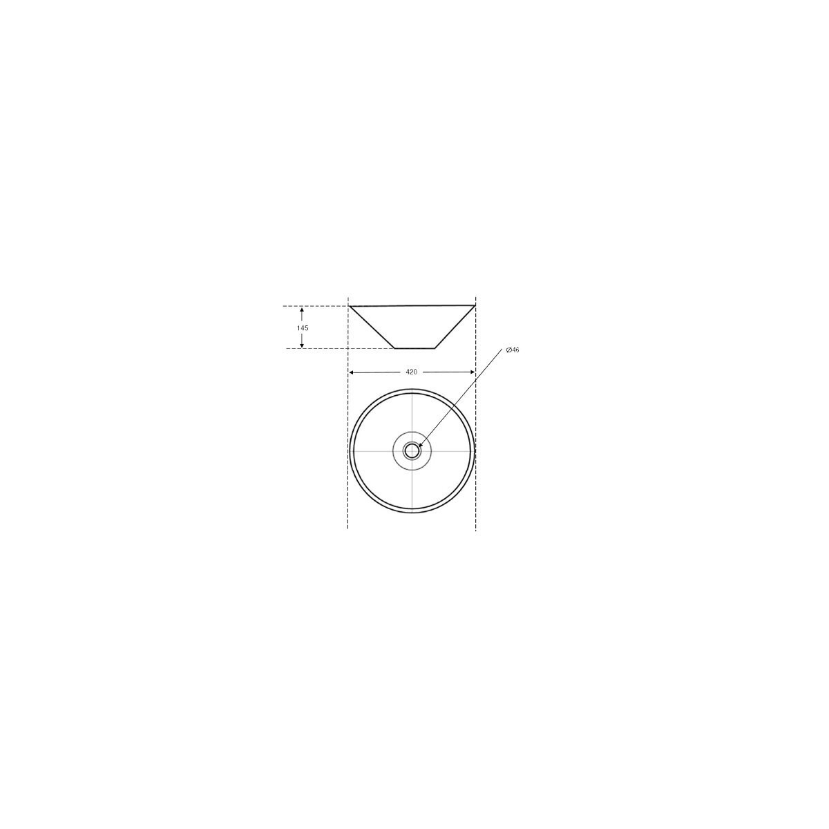Vasque à poser ronde en pierre Gris ardoisée Vasque en granit Diamétre : 42 cm Sans trop plein Sans plage de robinetterie Bonde à écoulement libre Livré sans bonde