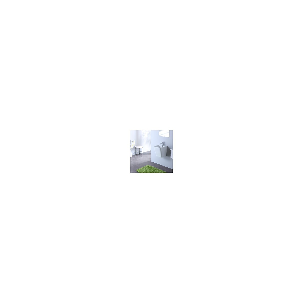 Lavabo totem à suspendre de forme épurée blanc Avec trop plein. Avec plage de robinetterie. Livré sans bonde. Livré sans robinetterie. Le totem est évidé à l'arriére permettant le passage des tuyaux.