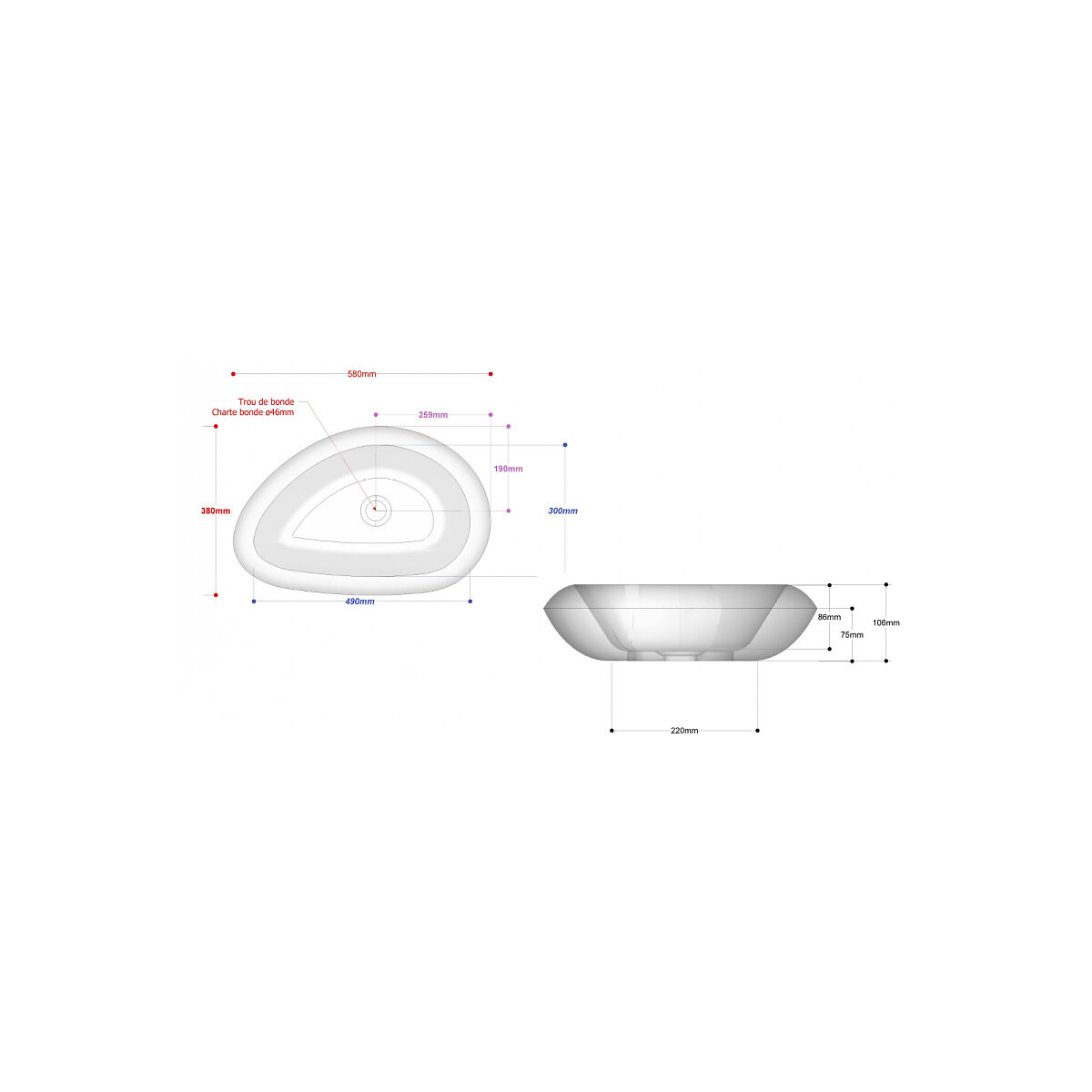 Vasque à poser en forme de galet en pierre naturelle gris ardoisé Vasque en granit Sans trop plein Sans plage de robinetterie Cette vasque doit être équipée d'une bonde à écoulement libre Livré sans bonde