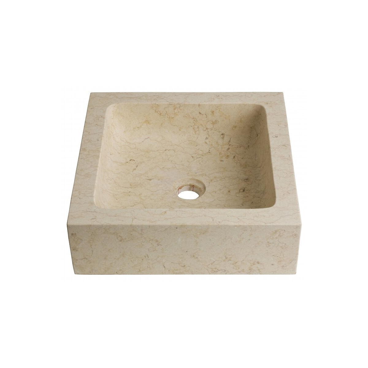 Vasque à poser carrée en pierre Beige egyptien Vasque en marbre Sans trop plein Sans plage de robinetterie Bonde à écoulement libre conseillée Livrée sans bonde ni siphon
