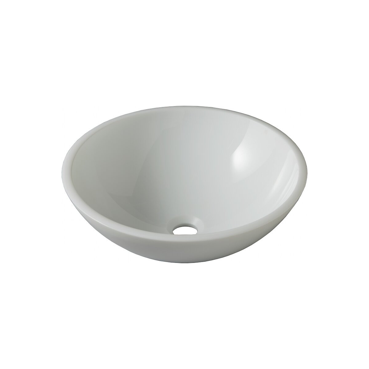 Vasque à poser ronde en verre blanc opaque Livrée sans bonde ni robinetterie Dimension : L42 x H15 x P 42 cm Cette vasque respecte la norme EN14688