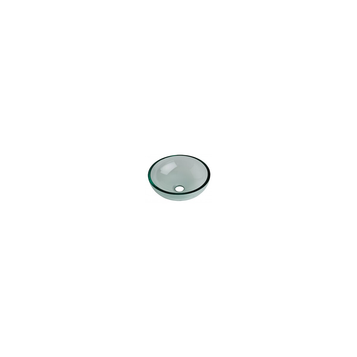 Vasque à poser ronde en verre SECURIT transparent Diamétre : 31 cm Sans trop plein Sans plage de robinetterie Bonde à écoulement libre Livré sans bonde