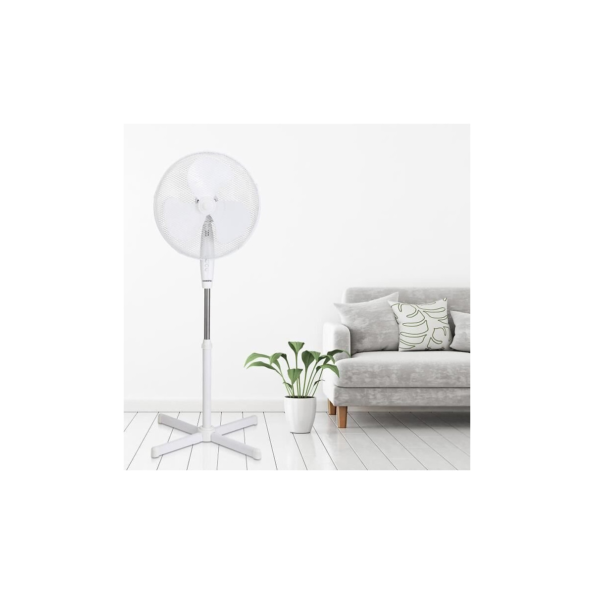 OCEANIC Ventilateur sur pied 45 W avec fonction oscillation / inclinaison - Réglage du débit d'air - 3 vitesses - Diametre 40 cm - Hauteur ajustable jusqu'a 120 cm - Blanc.