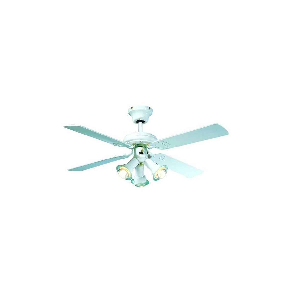Farelek - Maldives O 107 Cm - Ventilateur De Plafond Reversible, 4 Pales Laquees Blanc + Eclairage 3 Spots 60 Watts E14 - 11261
