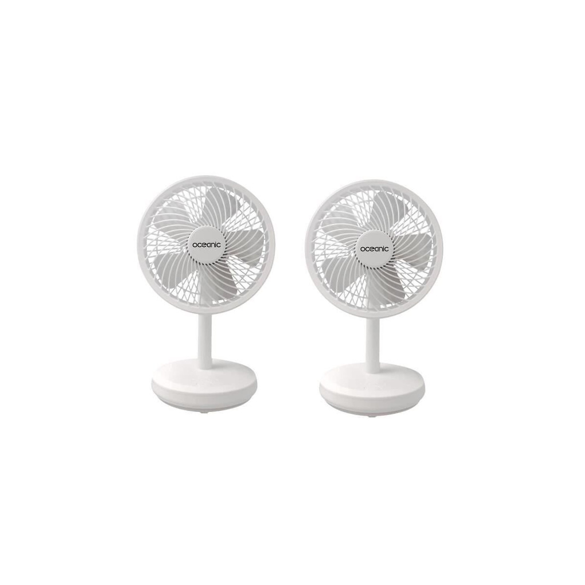OCEANIC Pack de 2 mini ventilateurs USB rechargeables - Diametre 15 cm - 4 W - 4 vitesses - Batterie Li-Ion 2,6 Ah - Blanc