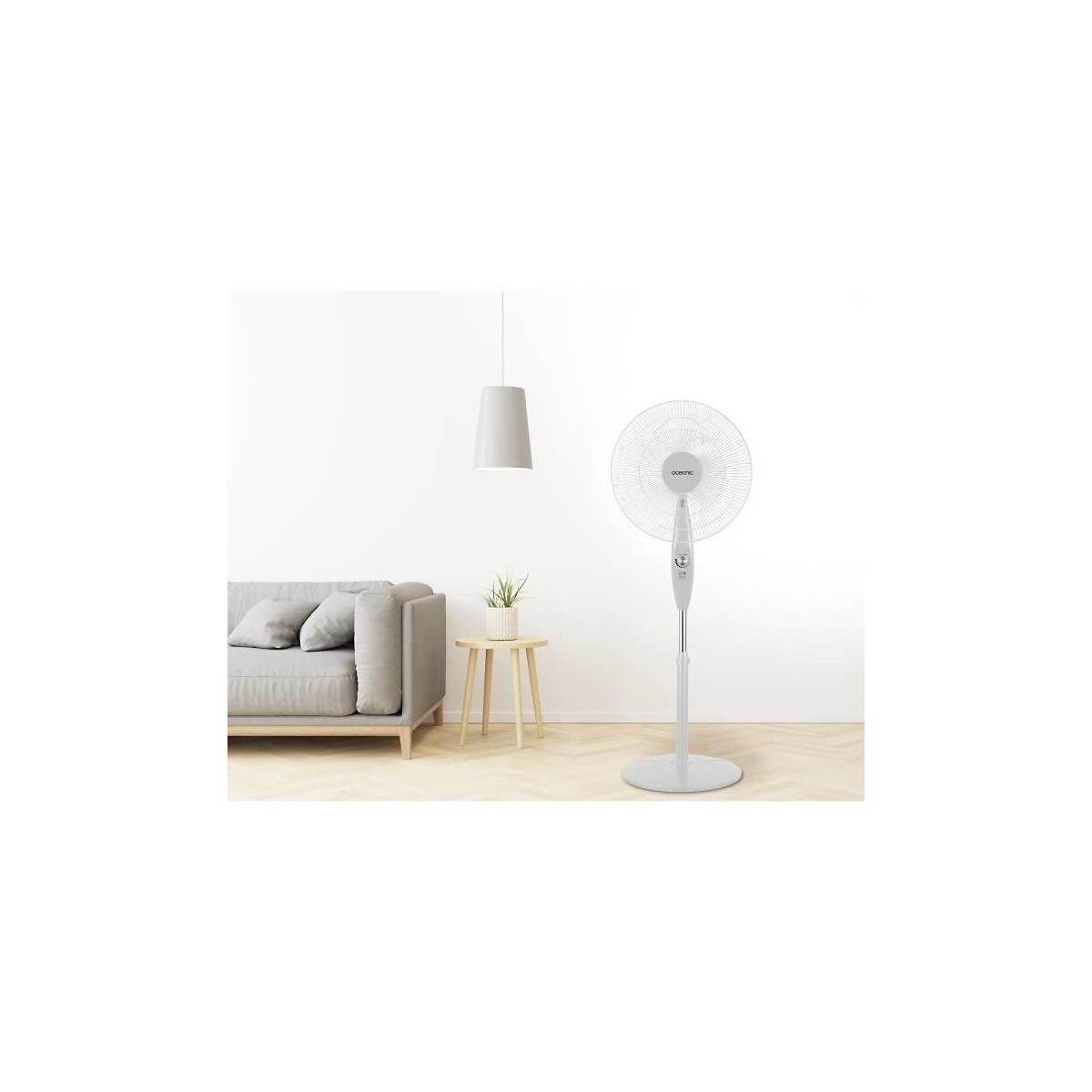 OCEANIC Ventilateur sur pied - Moteur DC - Puissance de 5 a 35 W avec fonction oscillation / inclinaison - Diametre 40 cm - Débrayable - Réglage du débit d'air - Hauteur ajustable jusqu'a 135 cm - Couleur : Blanc