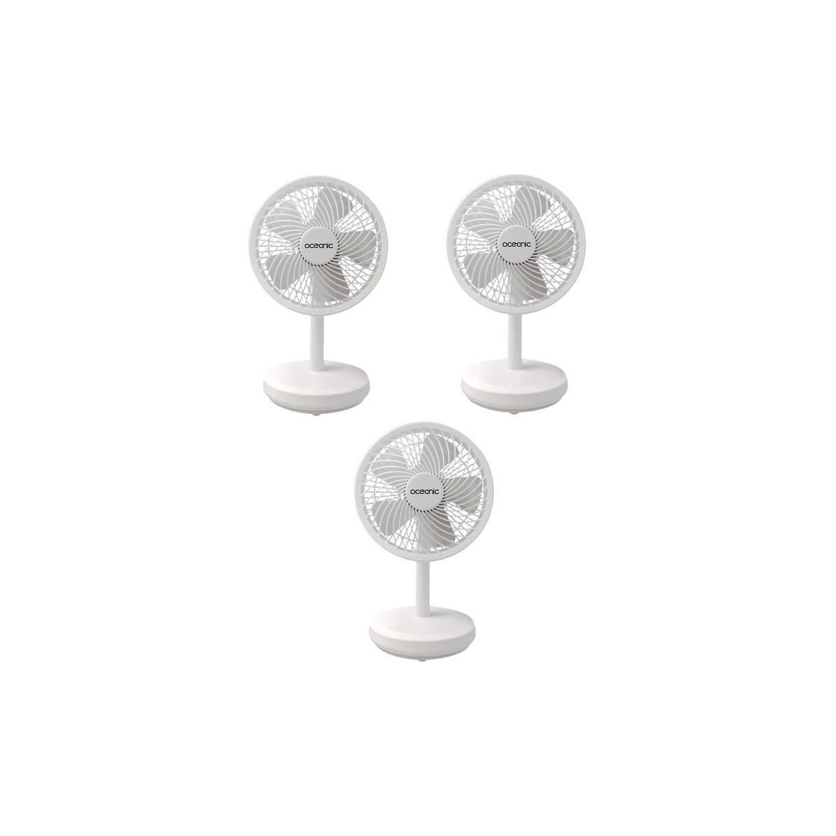 OCEANIC Pack de 3 mini ventilateurs USB rechargeables - Diametre 15 cm - 4 W - 4 vitesses - Batterie Li-Ion 2,6 Ah - Blanc