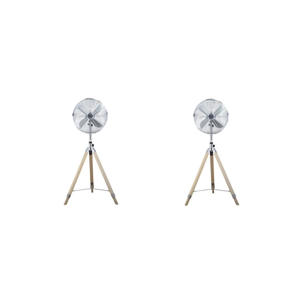OCEANIC Pack de 2 ventilateurs trépied 50 W - Diametre 40 cm - Hauteur réglable - Oscillation - Inox et Bois
