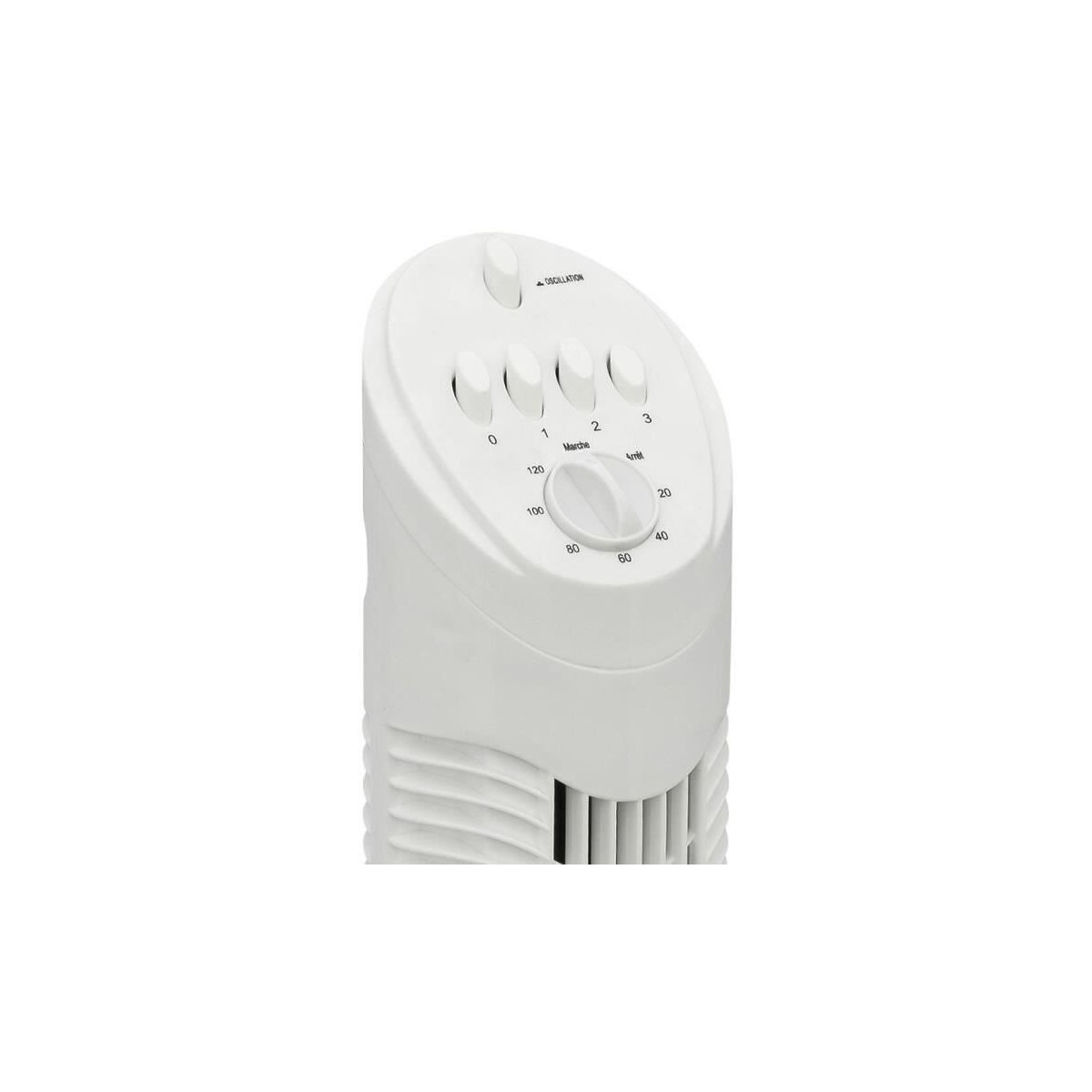 Ventilateur colonne 75cm | minuterie 120 mn | 50W | Blanc | Débit d'air 26,25m³/min.| Vitesse de l'air 2,65m/sec | Sonore: 55,9 dB