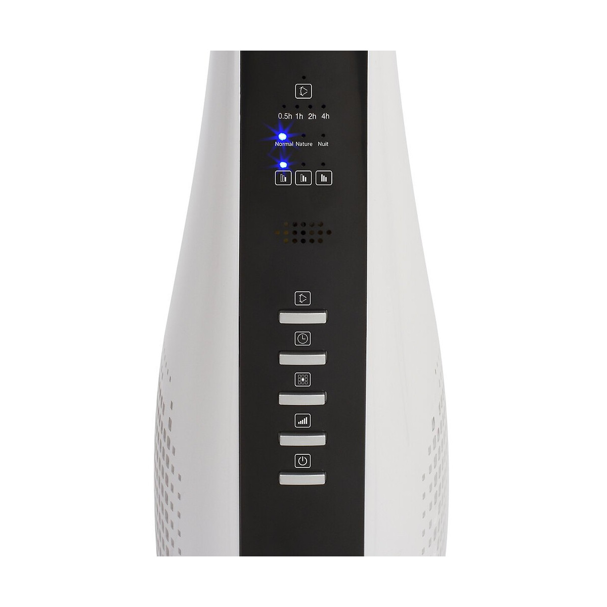 dom409 - Le ventilateur colonne DOM409 de Livoo dispose de 3 vitesses, 3 fonctions, nuit, nature et normal. - Ventilateur colonne. Puissance : 40 W. 3 vitesses de ventilation. Fonctions nuit, nature et normal. Hauteur : 110 cm. Fonction oscillation à 60°. Minuterie jusqu'à 7h30. Programmable par télécommande incluse. Pile incluse dans la télécommande. Type de pile : CR2025. Dimensions : 27,2 x 27,2 x 111,3 cm. Poids : 3.4 kg. Couleurs : blanc et noir.
