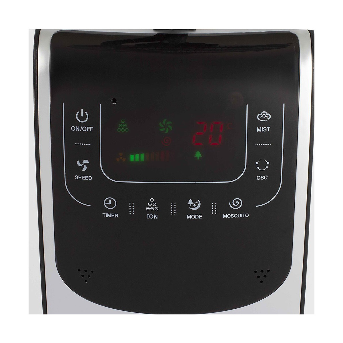 dom385 - Le ventilateur brumisateur DOM385 de Livoo vous permettra de refroidir une pièce mais aussi de l'humidifier pour un confort supplémentaire. La fonction de brumisation offre un vrai soulagement pendant l'été, mais peut également être utilisé en hiver lorsque l'air est sec. Idéal pour l'été avec sa fonction anti-moustiques. Déplacé le facilement grâce aux 5 roulettes présentent sur le socle. - Ventilateur brumisateur Puissance : 90 W Débit maximum du ventilateur : 60.66 m3/min Niveau sonore : 52.7 dB Ecran touche digitales 3 vitesses de ventilation et 3 niveaux de brumisation Fonction ioniseur et anti-moustiques Diffuseur de fragance Réservoir d?une capacité de 3.1 L Brumisation : 220ml/h Minuterie de 12 heures Oscillant à 80° et tête inclinable Socle équipés de 5 roulettes Télécommande fournie avec pile (1 x CR2025) Pain de glace à mettre dans le réservoir fourni Dimensions : 136 x 40 x 40 cm Poids : 6.95 kg Couleur : noir et gris