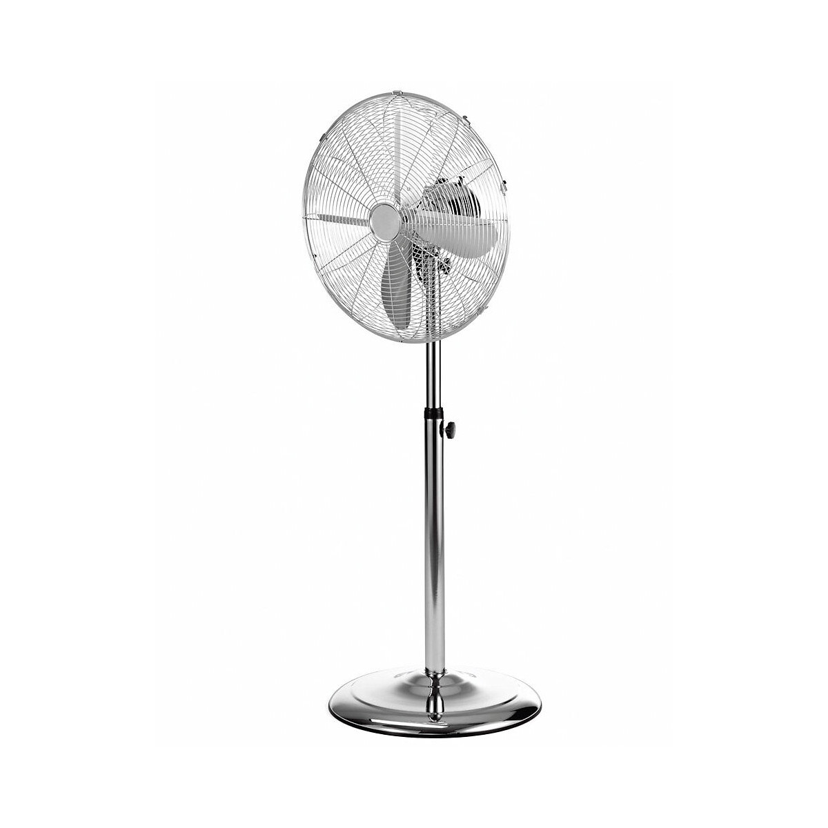 dom270 - Ventilateur sur pied chromé Domoclip DOM270, Ø 45 cm, 3 vitesses, oscillation horizontale à 70°, tête inclinable, grille de protection, moteur silencieux, hauteur ajustable jusqu?à 130 cm, grand pied stable avec patin antidérapant, câble de 1,80 m. - Poids brut : 8.40 kg. Dimensions : 50 x 45 x 150 cm. Nb de vitesse : 3. Finition : Metal. Couleur produit : Argent. Puissance : 60W. Secteur : Oui.