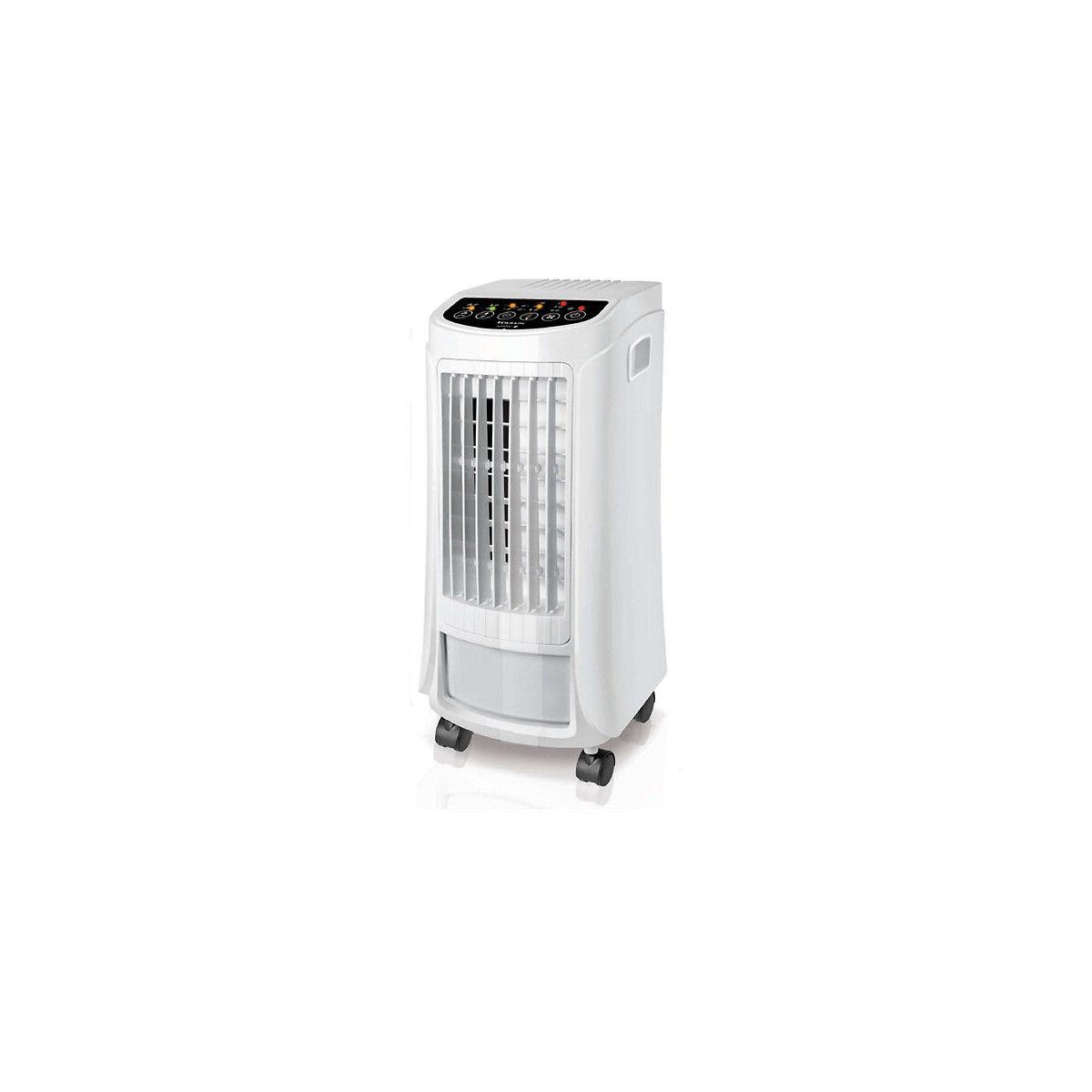 r750 - - Puissance : 65 W. 4 en 1: rafraîchir, ventiler, humidifier, purifier. 3 vitesses de ventilation. Niveau d'eau visible. Minuteur : 7h50. Oscillation verticale (automatique). Filtre à poussières lavable. 4 roulettes. Réservoir : 4 L. Débit d'air : 550 m3/h. Pain de glace inclus. Dimensions (LxHxP) : 28 x 61 x 29,5 cm. Poids net : 4 kg. Couleur : Blanc.
