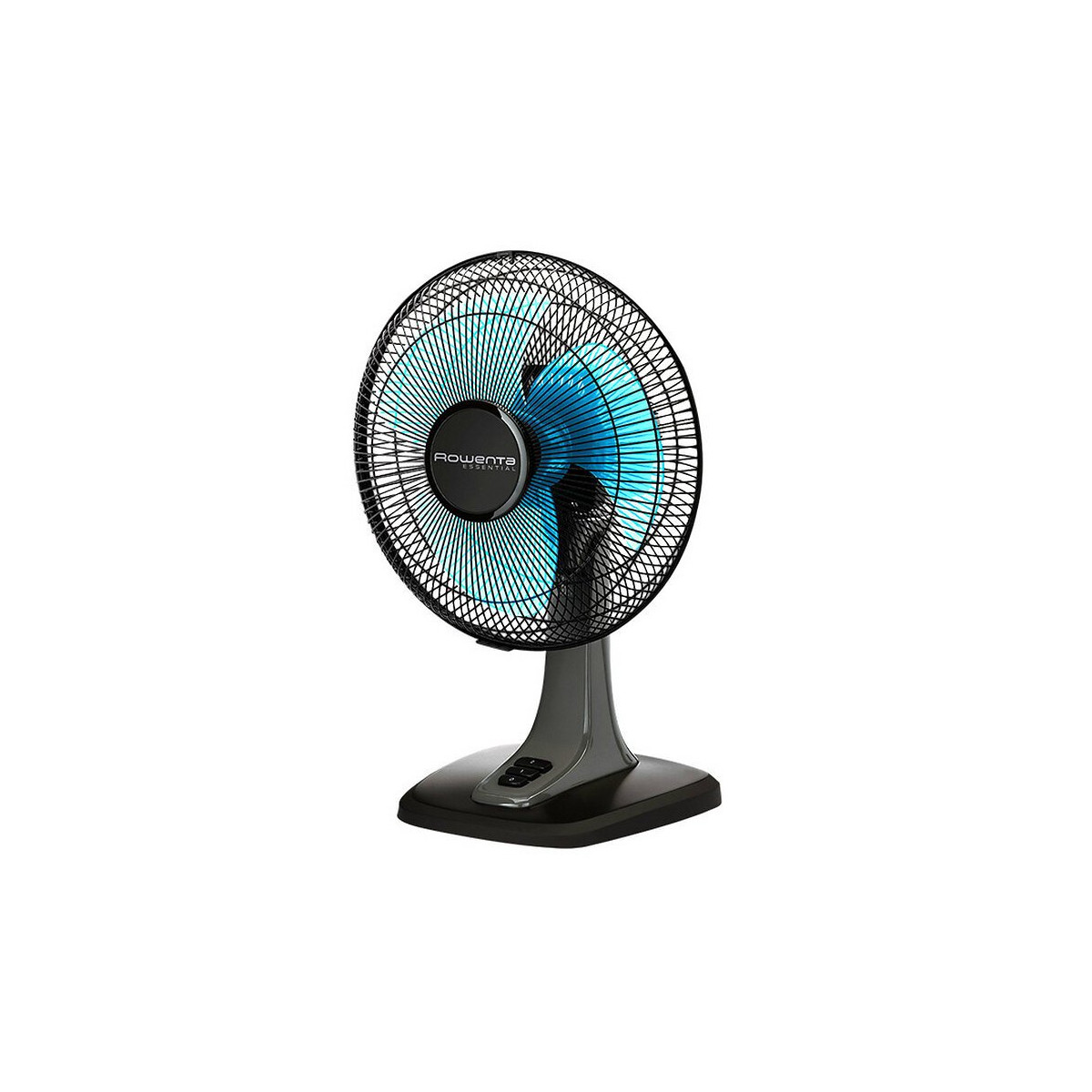 vu2110f0 - Ventilateur de table Essential Rowenta VU2110F0. Ce ventilateur compact et simple d'utilisation s'intégrera parfaitement dans votre intérieur.COMPACTVous pourrez le déplacer à votre guise dans différentes pièces à l'aide de sa poignée de transport.SIMPLE D'UTILISATIONGrâce à sa double orientation du flux d'air, vous pourrez moduler son flux d'air pour une ventilation personnalisée.MODERNENoir pour une structure haut de gamme et bleu pour des pales design. - Diamètre de l'hélice : 25 cm. Débit d'air max (m3/min) : 20m3/min. Orientation horizontale auto. Orientation verticale réglable. Poignée de transport. Coloris des pales : Bleu. Coloris du produit : Noir. Nombre de vitesses : 2. Puissance (W) : 28 W. Nombre de pales 3. Dimension produit nu (LxPxH en cm) : 30,5 x 24 x 48. Poids net (kg) : 2. Poids brut (kg) : 2,7.