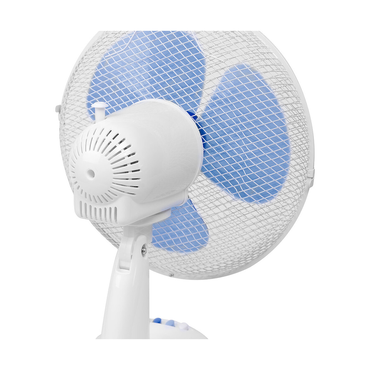 ddf45w - Le ventilateur de table DDF45W Bestron possède une puissance de 45W et le diamètre de son panier est d'environ 45 cm. - Ventilateur de table Puissance : 45 W Panier diamètre d'environ 45 cm Débit d'air 78,65m³/min Vitesse de l'air 3,11m/sec Niveau sonore: 53,38 dB Pivotant d'environ 80° Panier réglable verticalement Ventilateur avec pales aérodynamiques 3 vitesses Pieds antidérapants Équipé d'un moteur électrique bobine 100% en cuivre, donc robuste et stable Avec label de qualité certifié GS = Normes de qualité et de sécurité très strictes Dimensions (LxlxH) : 45 x 27 x 57 cm Poids : 2.13 kg Couleur : blanc et bleu