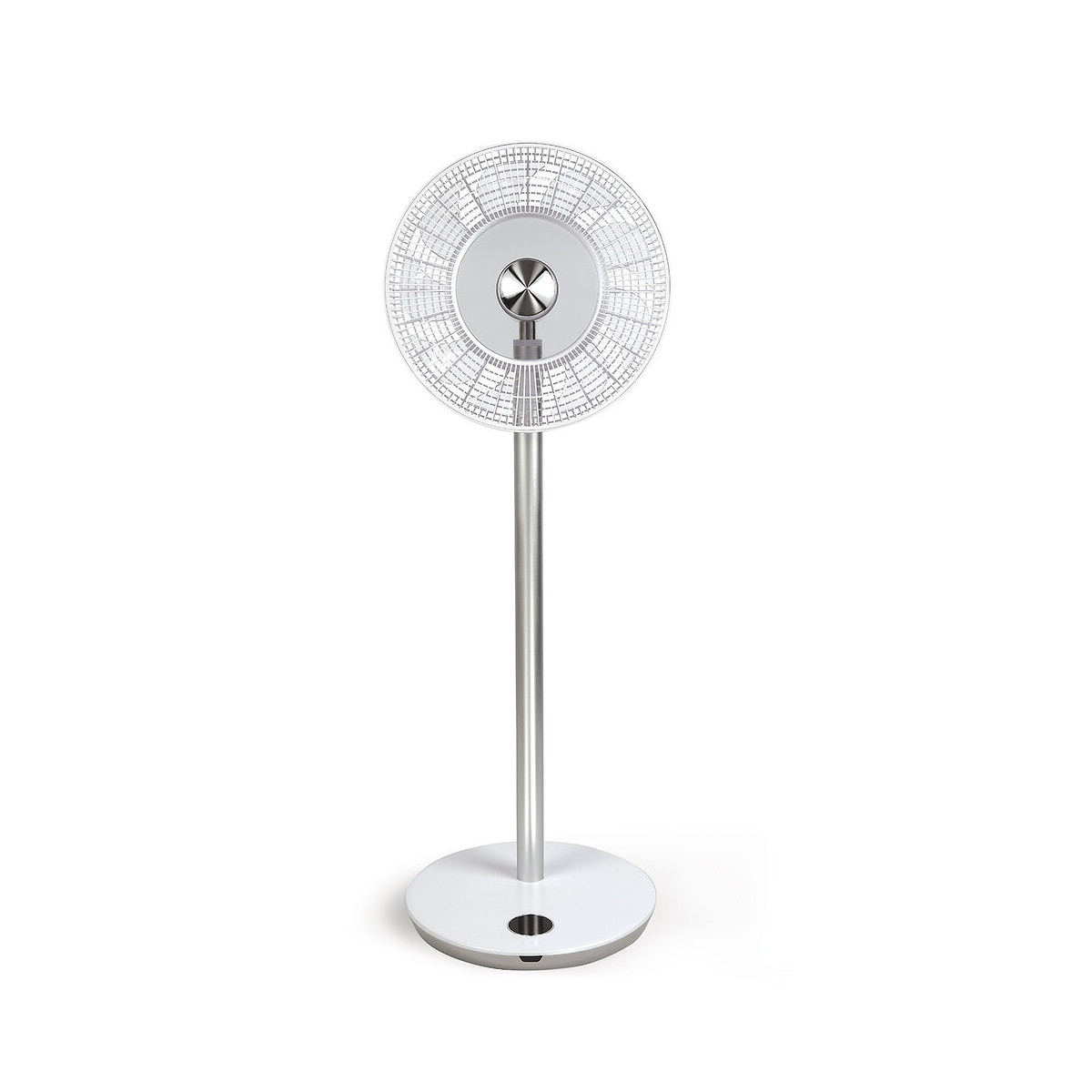 dom449 - Un ventilateur efficace et silencieux. Le ventilateur sur pied sans fil offre une liberté extrême puisqu'il n'y a pas besoin de le brancher à une prise pour le faire fonctionner. Ultra design, ce modèle tout en élégance, trouvera sa place dans toutes les pièces de la maison. Profitez d'un ventilateur performant et ultra silencieux (55 dB à vitesse minimale) pour vous apporter une sensation de fraîcheur tout au long de la journée. Un rafraîchissement puissant Avec 12 vitesses de ventilation, le ventilateur offre une large possibilité de puissance pour obtenir une brise légère ou un vent puissant pour apporter de l'air autour de vous et de la fraîcheur. De plus, l'appareil offre 3 types de vents pour reproduire un vent naturel, un vent silencieux grâce au mode sommeil ou un vent normal. Ces différents modes permettent de proposer un vent adapté aux différents moments de la journée. L'oscillation à 30°, 60°, 90° ou 120° ainsi que le diamètre de 30 cm permettent d'obtenir une portée efficace afin d'apporter une brise dans l'ensemble de la pièce où se trouve le ventilateur. Sans fil pour plus de liberté Doté d'une batterie rechargeable avec une autonomie de 10 heures, le ventilateur fonctionne sans fil et peut donc être placé où vous le souhaitez dans la maison. Cette fonction est très pratique notamment lorsque les prises électriques sont éloignées du lieu où vous souhaitez obtenir une brise d'air. Enfin, une télécommande permet également de programmer son ventilateur depuis le canapé ou le bureau sans avoir à se lever, pour plus de praticité. - Ventilateur sur pied sans fil Puissance : 30 W Rotor transparent 9 pales Ø 30 cm 12 vitesses de ventilation 3 type de vents : naturel / sommeil / normal Oscillation automatique à 30°, 60°, 90° ou 120° Batterie rechargeable jusqu'à 10h d'autonomie Minuterie jusqu'à 12h Télécommande Hauteur 100 cm Silencieux : 54 dBA Flux d'air de 25,5 m3/min Dimensions : 34 x 34 x 99 cm Poids : 4.05 kg Couleur : blanc