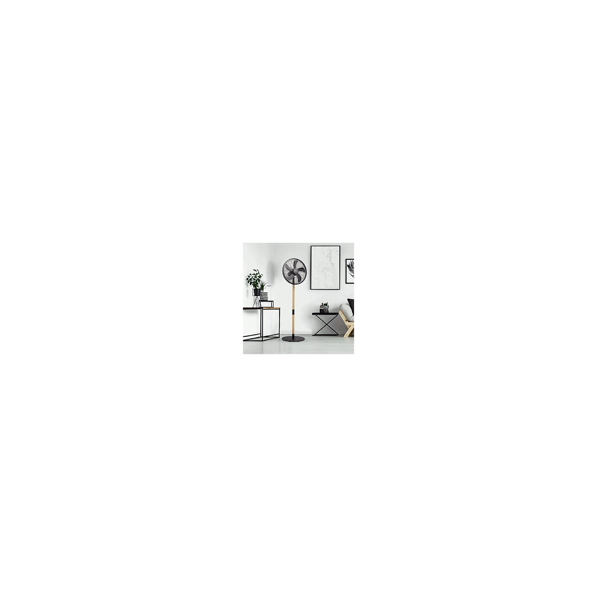 dfs45wb - Le ventilateur sur pied DFS45WB dispose de 3 vitesses, il offre un grand brassage d'air grâçe à son diamètre de panier de 45 cm. - Ventilateur sur pied Puissance : 45 W Design élégant avec des éléments de bois et de métal noir Panier diamètre environ 45 cm Équipé d'un moteur électrique bobine en cuivre, donc robuste et stable Grand brassage d'air Pivotant environ 80° Panier réglable verticalement Ventilateur avec pales aérodynamiques Interrupteur de vitesses (0 ? 1 ? 2 ? 3) Pied antidérapant Silencieux Avec label de qualité certifié GS = normes de qualité et de sécurité très strictes Dimensions (L x l x H) : 43 x 43 x 150 cm Poids : 9.8 kg