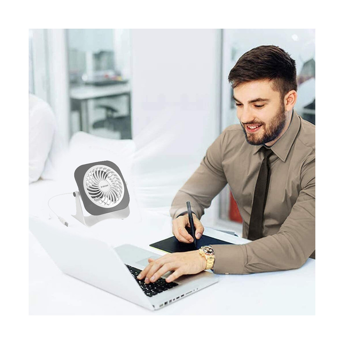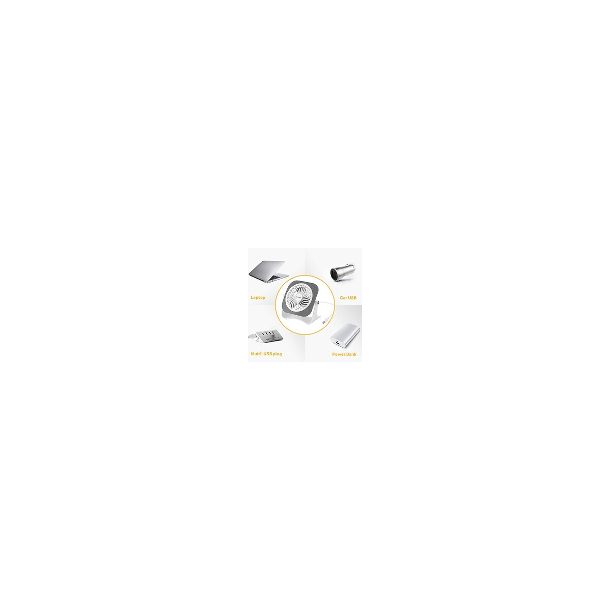 Utilisez-le : ce mini ventilateur de table USB est un ventilateur personnel parfait pour la maison, le bureau, la chambre, la bibliothèque, la salle de jeux, etc. Ce mini ventilateur de table de 10 cm de diamètre peut produire une légère brise pour vous garder au frais et détendu. Ce mini ventilateur pèse très peu : il est facile à transporter. Design ultra silencieux : le moteur brushless à faible bruit rend ce mini ventilateur ultrasilencieux. Parfait pour le bureau, la maison, la chambre, le bureau, la bibliothèque, la salle de jeux. Vous avez juste la brise fraîche, pas le bruit. Alimentation multiple. Ce ventilateur s'utilise avec: ordinateur, ordinateur portable, notebook, chargeur de voiture, bloc d'alimentation, chargeur mural USB 5 V, chargeur solaire 5 V et même le chargeur de téléphone. Il suffit de brancher le ventilateur pour vous sentir détendu. 2 vitesses : pour adapter le flux d'air en fonction de la chaleur ou de vos besoins. Orientable : vous pouvez incliner et régler le ventilateur pour que vous puissiez profiter de la brise fraîche en fonction de vos besoins.