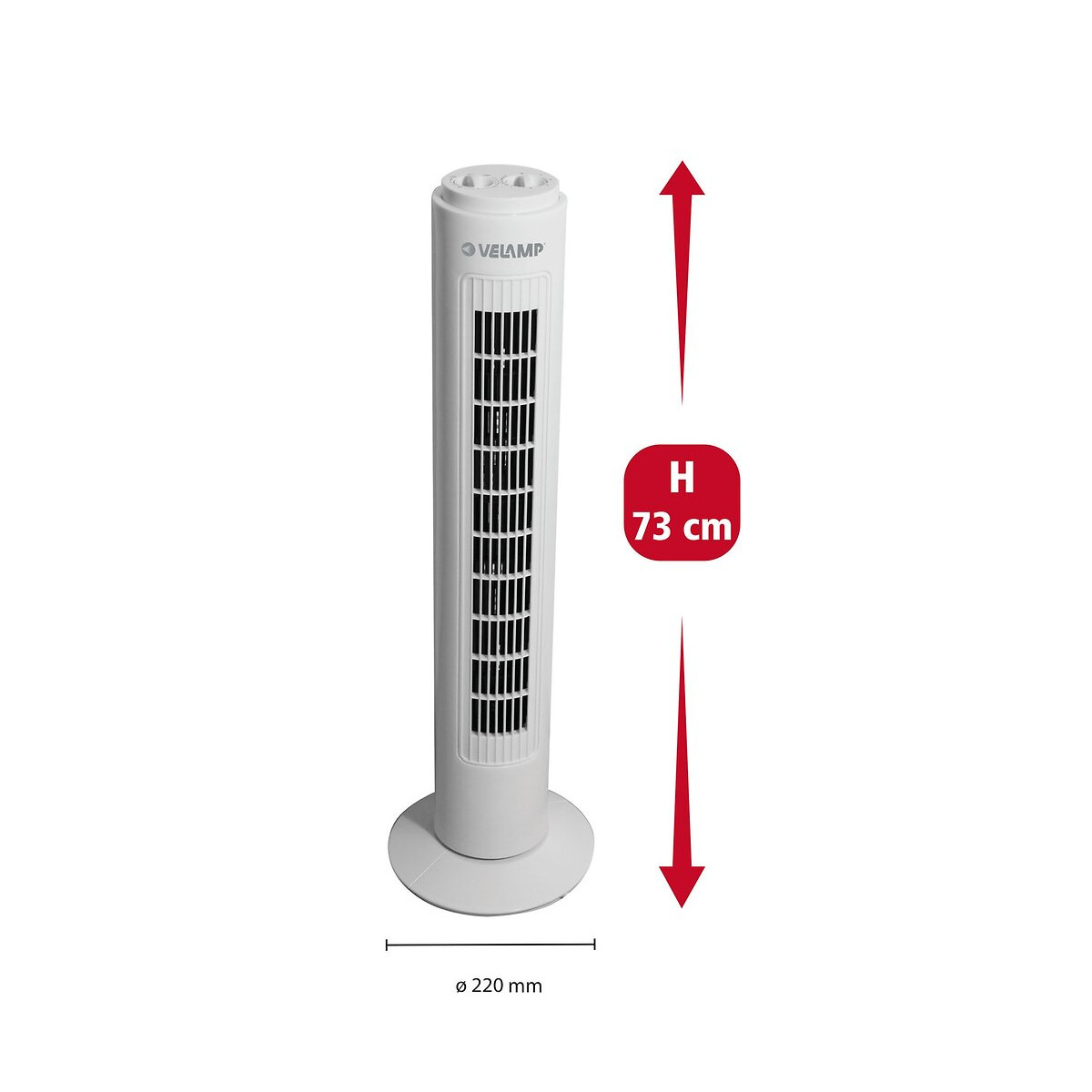 45 watts de puissance / faible consommation d'énergie / silencieux. Rotation latérale automatique à 75 °; équipé de boutons pour sélectionner les 3 vitesses; équipé d'une minuterie de 120 minutes.Base de support large: puissant et stable. Dimensions: largeur 22 cm, profondeur 22 cm, hauteur 73 cm; design élégant, compact et fonctionnel. Velamp est une marque italienne: nos produits sont soignés, aux normes et de qualité.