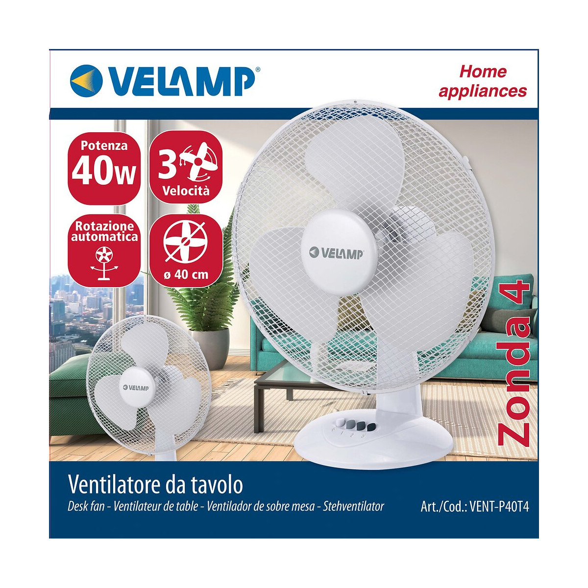 40 watts de puissance / faible consommation d'énergie / silencieux. Rotation latérale automatique et inclinaison réglable; équipé de boutons pour sélectionner les 3 vitesses; puissance max: 40W: puissant et stable. Grilles de protection avant et arrière / diamètre: 40 cm; base de support large et stable. Assemblage facile avec petit nombre de composants. Velamp est une marque italienne: nos produits sont soignés, aux normes et de qualité.