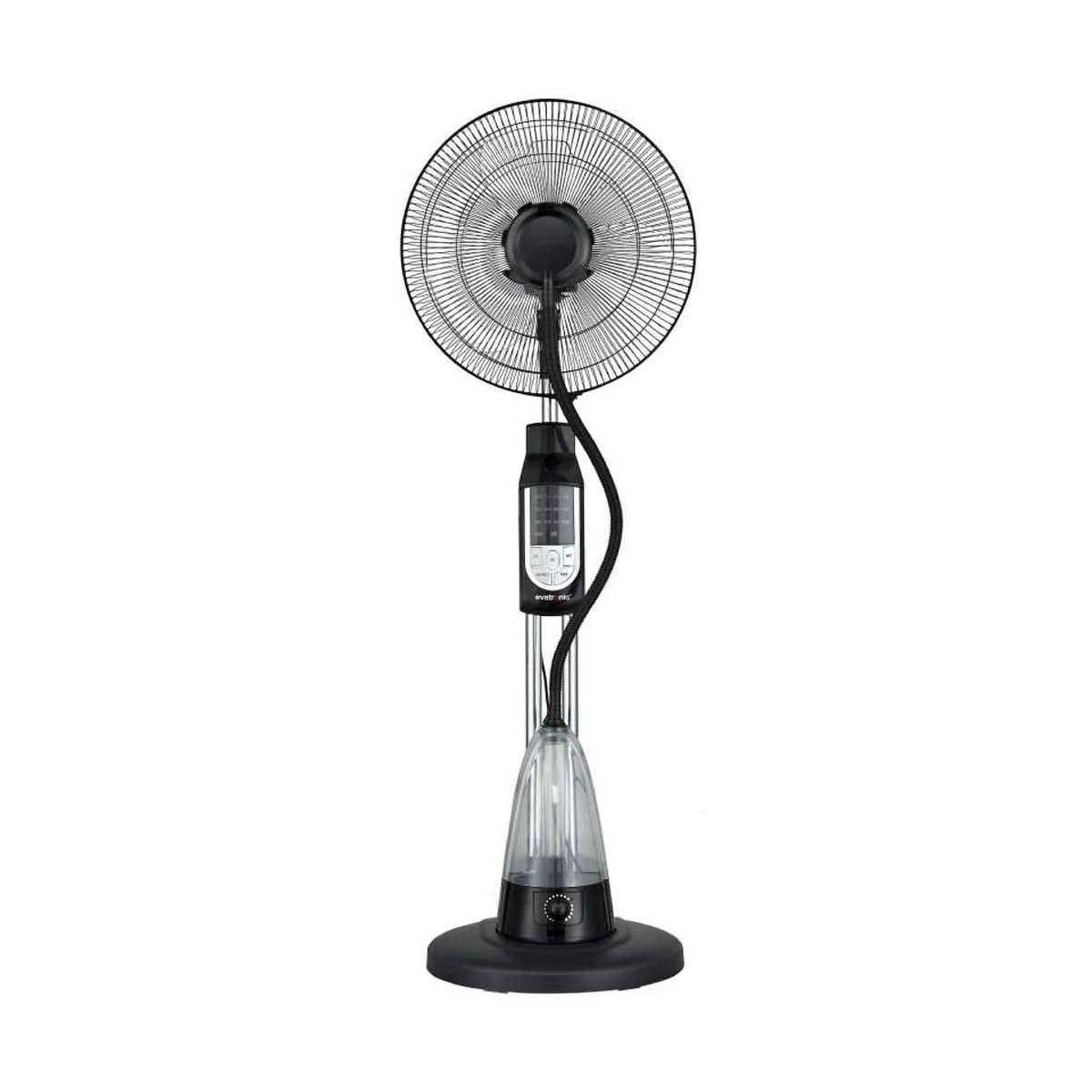 Description détaillée du produit: - ventilateur brumisateur - hauteur: 129 cm - diamètre: 40 cm - puissance électrique: 230 V - 3 vitesses de ventilation - télécommande - oscillation de la tête à 90° - écran de contrôle avec affichage lampe led - autonomie: 4 heures - brumisateur et ventilateur peuvent être gérés indépendamment - réservoir pour le brumisateur - capacité du réservoir: 2 litresSpécifications techniques