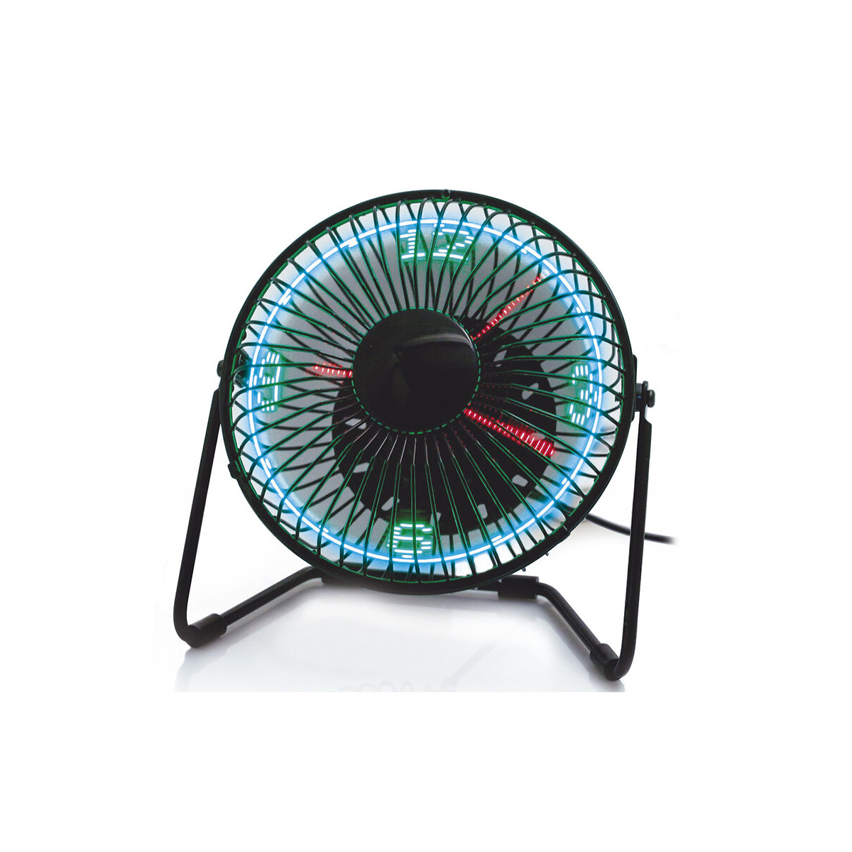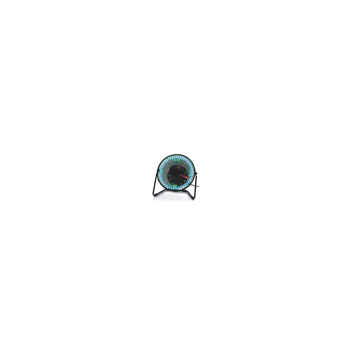 Les ventilateurs sont le moyen le plus simple, le plus pratique et le plus économique de lutter contre la chaleur, et le BN4002 est l'un des plus complets. Ce fantastique ventilateur de bureau fonctionne via USB, vous pouvez donc le brancher à votre ordinateur pour vous rafraîchir pendant que vous travaillez. Il dispose d'une puissance de 5V et d'une technologie super silencieuse avec une consommation optimisée de 3W. Parmi ses nombreuses commodités, on trouve une projection LED de 10cm de diamètre indiquant la température ambiante et l'heure, que vous pouvez modifier grâce à son bouton de réglage, de plus son inclinaison est réglable. Fait en acier et avec 3 lames en plastique, son design noir compact est la combinaison de l'efficacité et de l'élégance, et sa légèreté (180g) et ses dimensions (LxPxH: 16x8,5x16 cm) vous permettront de l'adapter à vos propres besoins.Spécifications techniques
