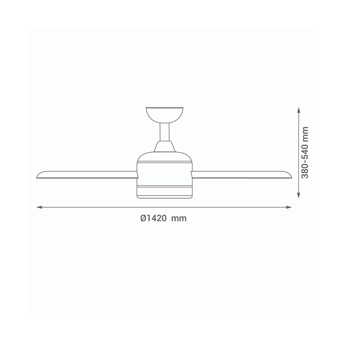 Ventilateur de plafond AC de 142cm de diamètre, idéal pour les pièces de plus de 20M2. Avec corps fini blanc, avec trois lames ABS blanches. Sa finition blanche est idéale pour les pièces où vous souhaitez cacher le ventilateur. Il est possible de monter avec ou sans tige de selle, permettant un montage avec une hauteur minimale. Avec une minuterie dans la télécommande incluse, avec laquelle la lumière LED neutre (4000K) est également contrôlée. Matériel: Métal / MDF / Acrylique Couleur: BLANC Cap: LED intégrée IP: 20 Dimensions (cm): 142x38-54cm Watts (W): 18w 1450lm Poids net: 9,5 kg RPM: 90/150/202 Consommation (W / h): 19/41/70 Débit d'air (m3 / min): 35/85/142 et Niveau sonore (dB): 27/30/36