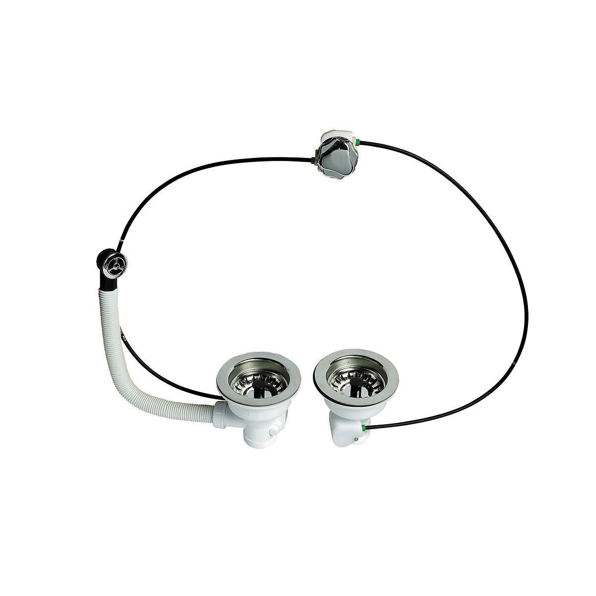 Bonde pour évier 2 bacs D 90 mm avec commande à cable