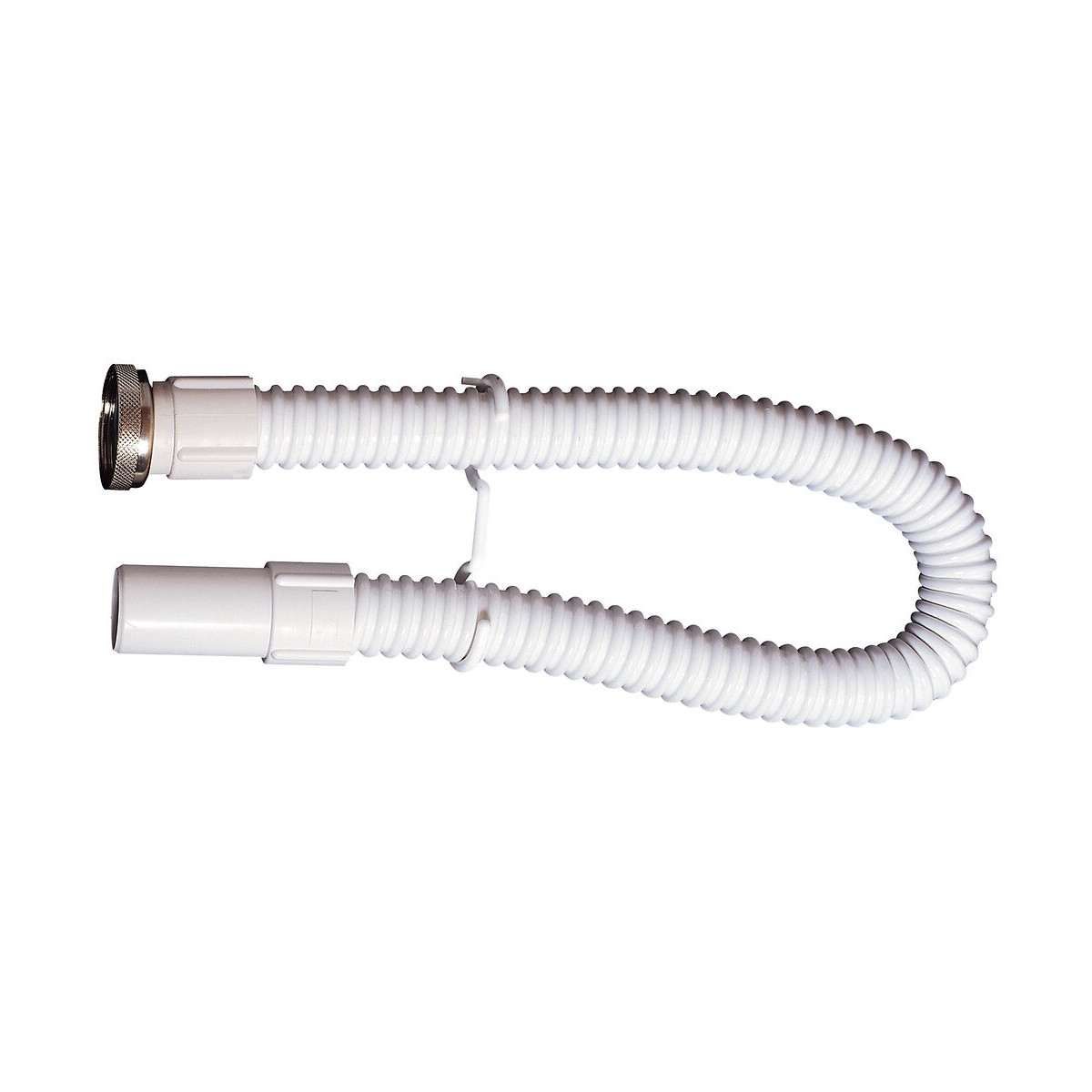 Raccord d'évacuation en PVC spiralé. Caractéristiques : D 32 mm Longueur 700 mm environ Entrée écrou en laiton 11/4 Sortie D 32 mm mâle à coller Intérieur lisse Crochet de maintien Garantie 2 ans