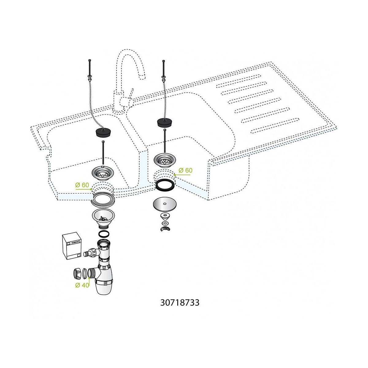 Vidage pour évier 2 bacs communicants Ø60 mm (grès ou synthèse) avec prise machine à laver Pour évier grès ou synthèse 2 bacs communicants Ø60 mm Siphon réglable en hauteur 2 bondes à bouchon dont 1 avec plaque d'obturation Prise machine à laver Vidage pour évier Ø 60 mm 2 bacs communicants (grès ou synthèse), siphon réglable en hauteur, avec prise machine à laver, 2 bondes à bouchon dont 1 avec plaque d'obturation. Nom du produit: Vidage Destination: Evier Marque du produit: WIRQUIN Gain de place: Oui Diamètre de la bonde (en mm): 60 Produit emballé : hauteur (en cm): 35 Produit emballé : largeur (en cm): 14 Produit emballé : profondeur (en cm): 9 Produit emballé : poids (en kg): 0.527