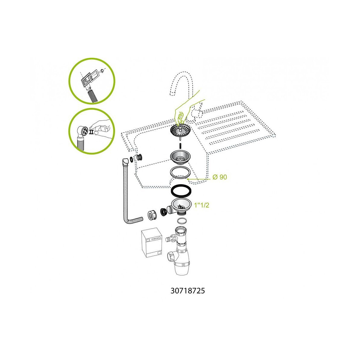 Bonde à panier pour évier 1 bac Ø90 mm (grès, synthèse, inox) avec trop-plein Pour évier inox, grès ou synthèse 1 bac Ø90 mm Bonde à panier inox avec trop-plein Commande manuelle Plage de serrage : 0 à 18 mm Tube de trop-plein souple L.310 mm Grille de trop-plein ronde en métal chromé Bonde à panier avec trop-plein pour évier 1 bac Ø90 mm (synthèse, inox ou grès), commande manuelle, plage de serrage de 0 à 18 mm, panier en inox. Tube de trop-plein souple L.310 mm, grille de trop-plein ronde en métal chromé. NF. Nom du produit: Bonde Type de bonde: Avec trop-plein Destination: Evier Marque du produit: WIRQUIN Gain de place: Oui Diamètre de la bonde (en mm): 90 Dessus de bonde: Panier Produit emballé : hauteur (en cm): 21 Produit emballé : largeur (en cm): 13.5 Produit emballé : profondeur (en cm): 12.5 Produit emballé : poids (en kg): 0.341