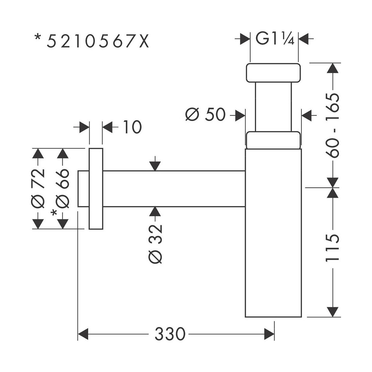 Points forts Un design innovant Des matériaux de qualité Garantie : 5 ans Caractéristiques techniques Ajustement : 6 -16,5 cm Distance du mur : 33 cm Etanche : 7 cm Dimension raccord de sortie : 1 1/4 Ref : 52105000