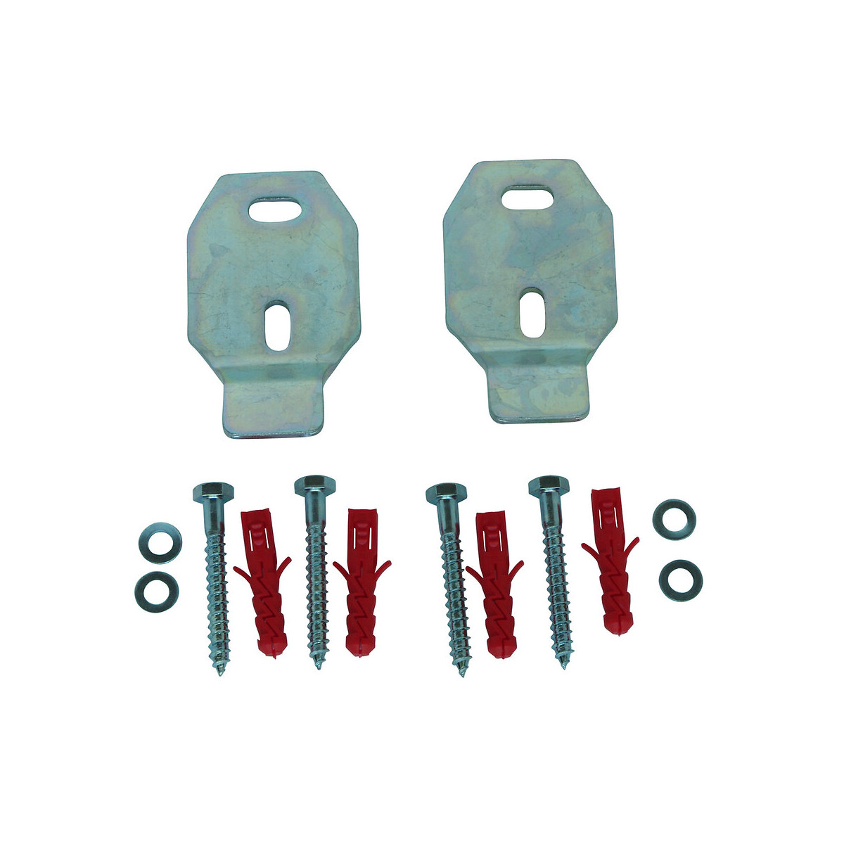 Kit de fixation support lavabo sur un mur plein (parpaing, brique, …) contenant 2 pattes supports, vis et chevilles de fixation.