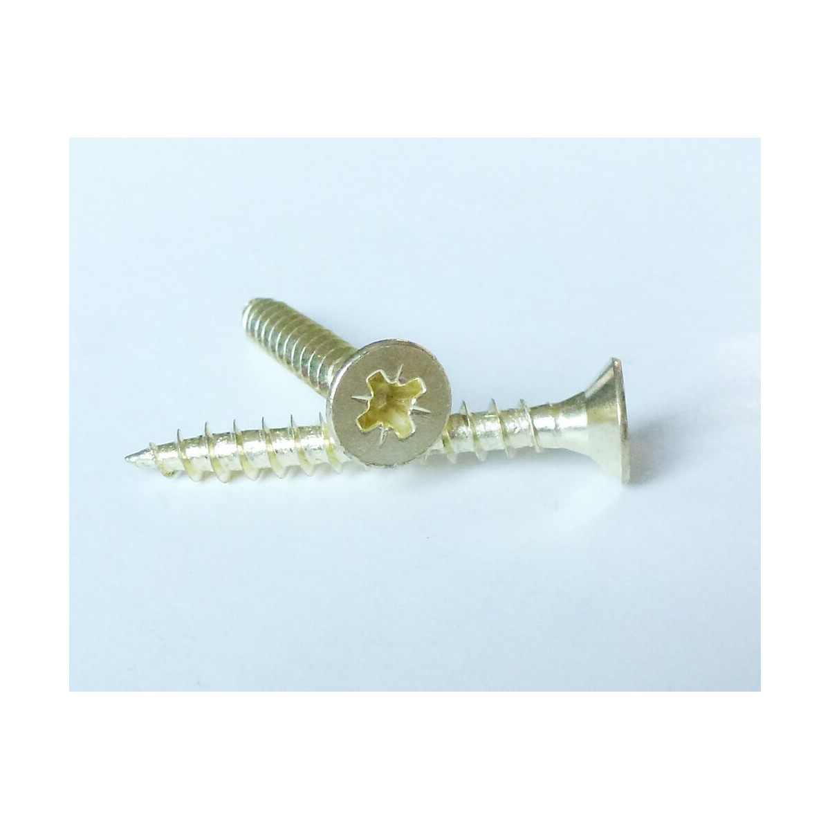40 vis agglo tête fraisée pozidriv acier laitonné 3,5x20 mm. L'aspect du laiton, la résistance de l'acier