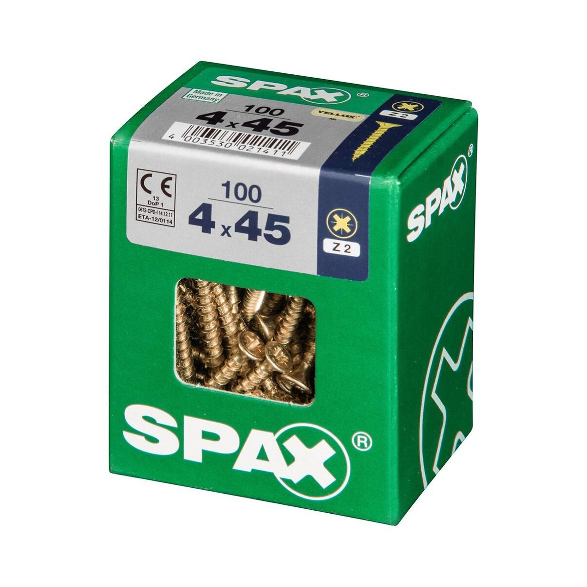 Lot De 100 Vis Acier Tête Fraisée Pozidriv Spax, Diam.4 Mm X L.45 Mm
