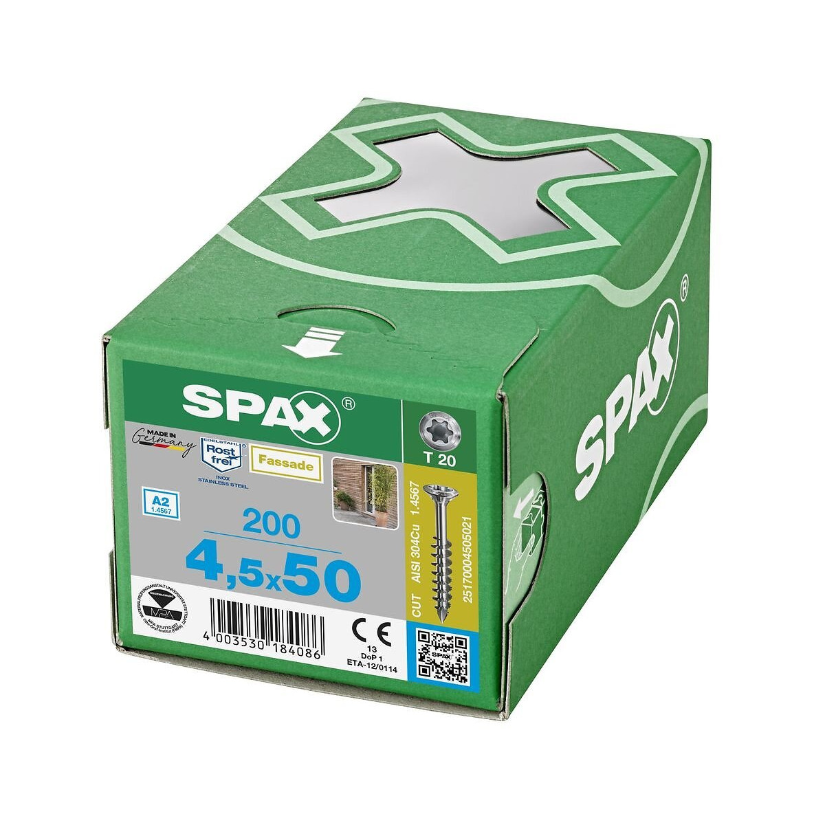 200 Vis Torx Tête Fraisée Autoforeuse 4,5x50 Spax Cut Inox A2 - Façade Bois Résineux
