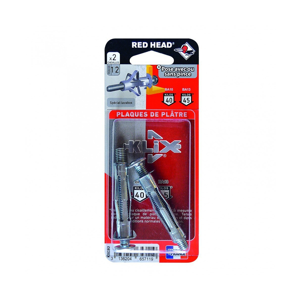 Lot De 2 Chevilles Et Vis À Expansion Klix Red Head, Diam.8 X L.53 Mm