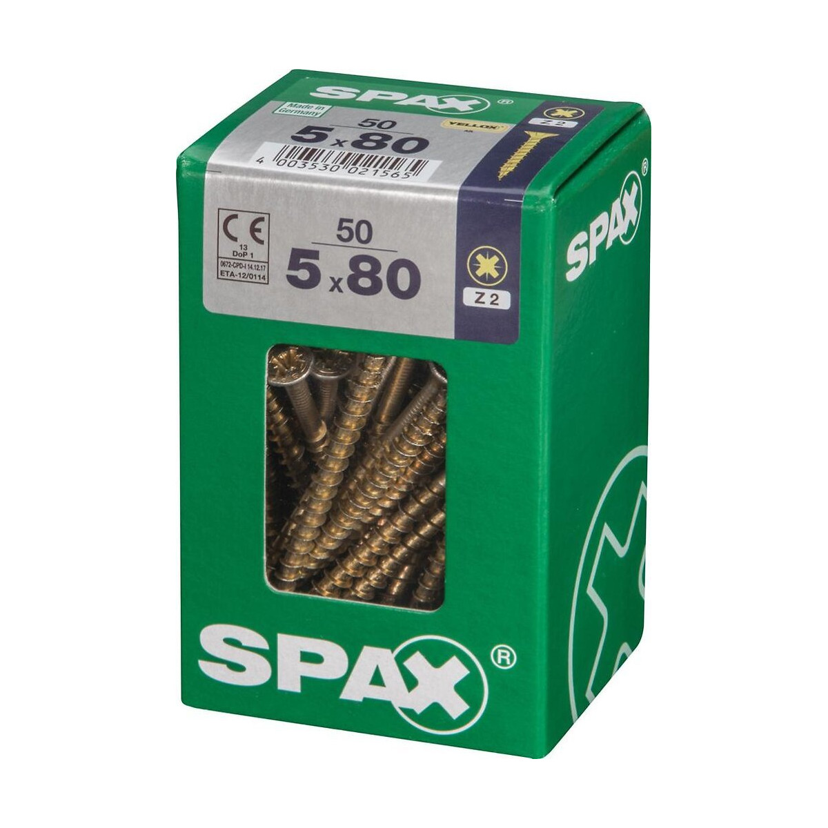Lot De 50 Vis Acier Tête Fraisée Pozidriv Spax, Diam.5 Mm X L.80 Mm