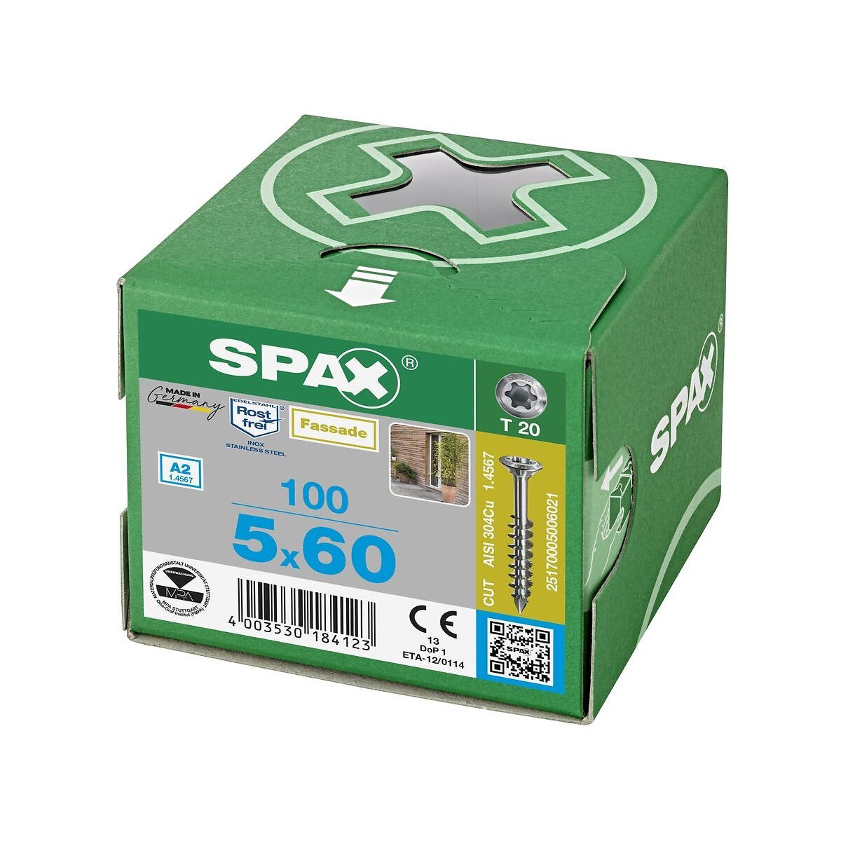100 Vis Torx Tête Fraisée Autoforeuse 5x60 Spax Cut Inox A2 - Façade Bois Résineux