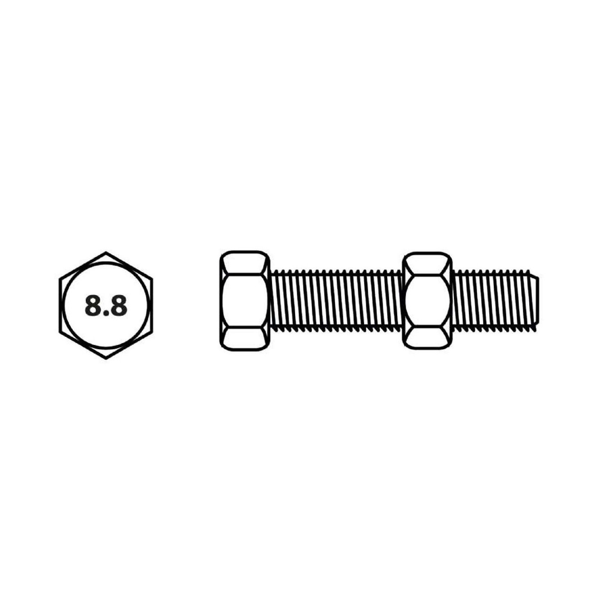 Informations produit: Boulon tête hexagonale et écrou Matière: Acier zingué Classe de résistance: 8.8 Dimensions: différents diamètres et différentes longueurs disponibles Vendu en lot Lieu d'utilisation: Intérieur / Extérieur Marque: VissalSpécifications techniques