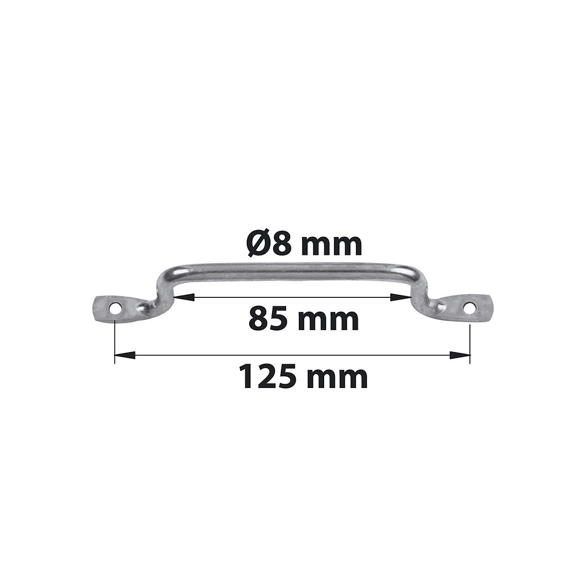 Poignée fil acier finition zingué blanc Matière principale: Acier Finition du produit: Zingué Entraxe (en mm): 125 Longueur (en mm): 140 Hauteur (en mm): 38 Diamètre (en mm): 8 Epaisseur (en mm): 16 Profondeur (en mm): 1.6 Largeur (en mm): 16 Usage du produit: Idéal pour tirer volets, portillons, tiroirs … sur supports bois Destination: Fenêtre Couleur: Gris Produit emballé : hauteur (en cm): 1.5 Produit emballé : largeur (en cm): 14 Produit emballé : profondeur (en cm): 3.6 Produit emballé : poids (en kg): 0.068 Indication du geste de tri (triman): Non